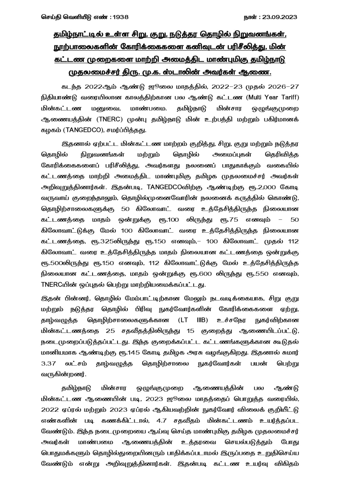 TN GOVT PRESS RELEASE 23.9.23 PAGE 1